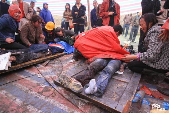 5月15日,一位母亲在得知自己孩子遇难后悲痛万分。