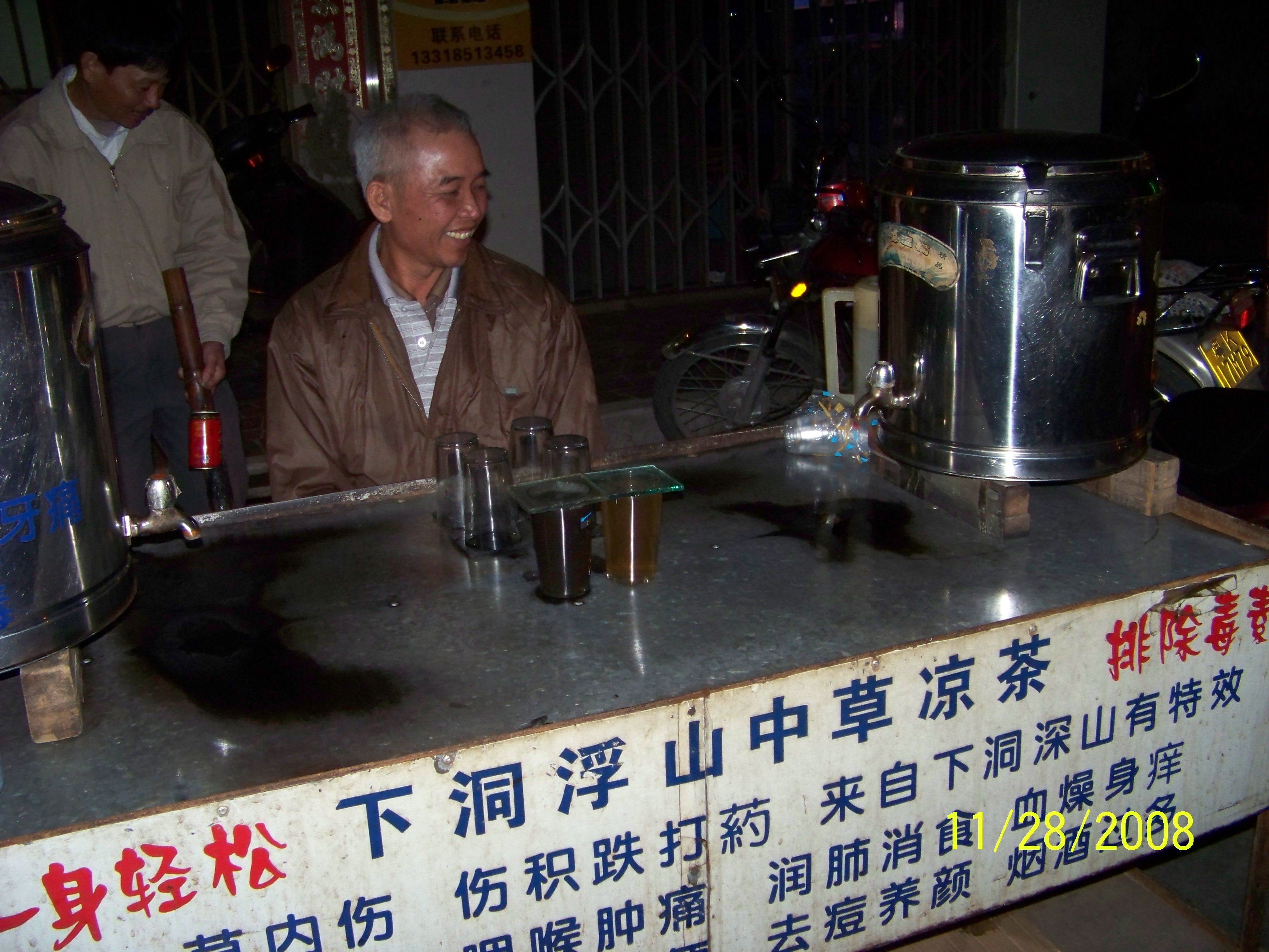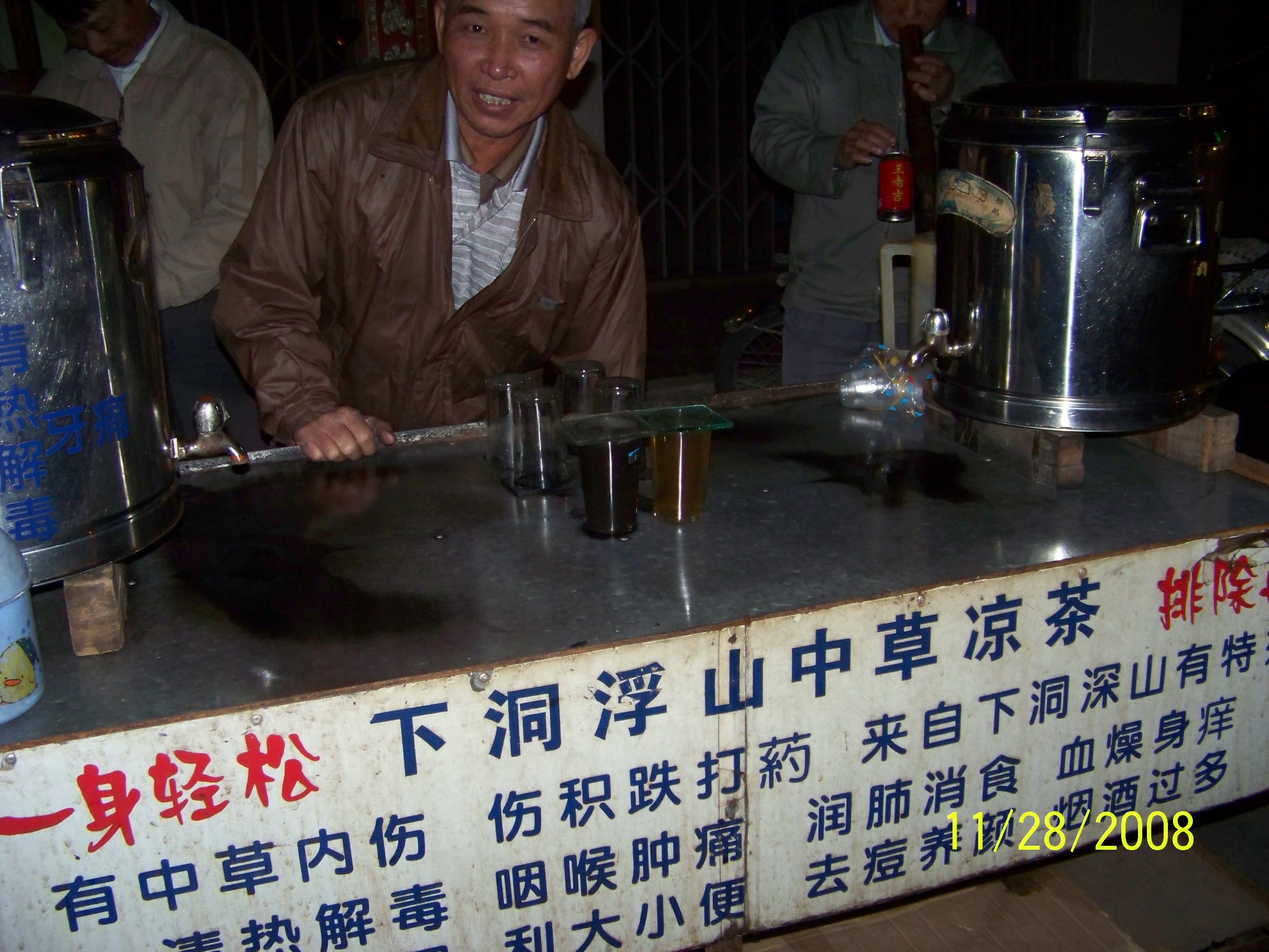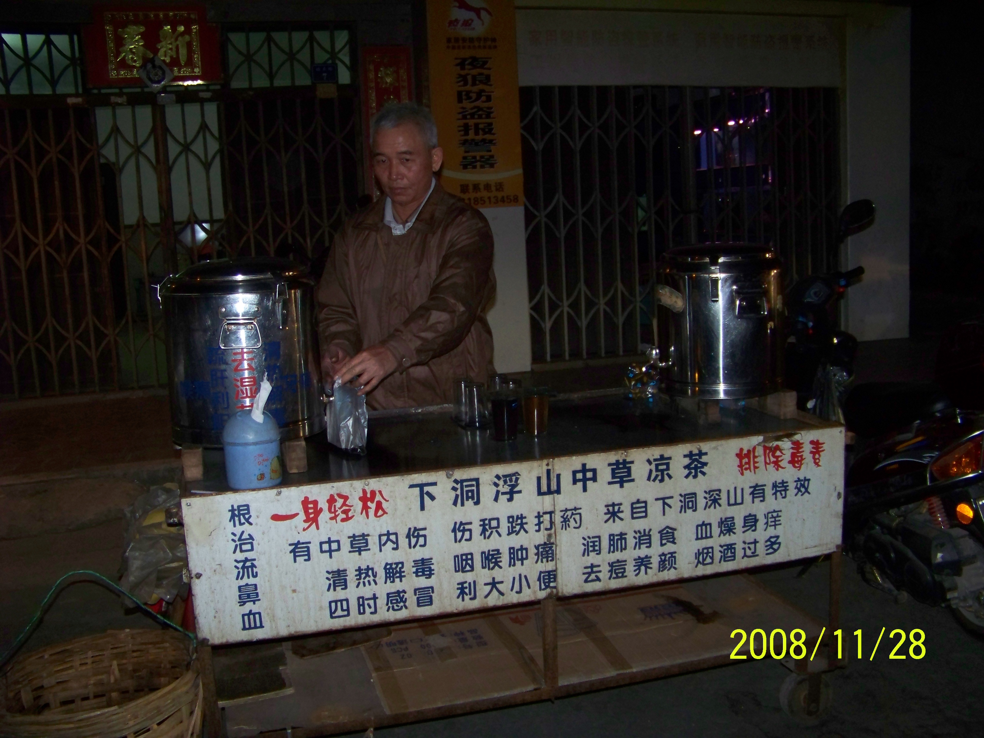 本人经过三年的体念,有效的凉茶就是浮山凉茶。一直都想说说霞洞浮山凉茶,但这几年一直在论坛潜水,最近才有在论坛发贴的想法,本人有时感冒、喉咙痛。水东凉茶也喝了不少地方,加药粉的、不加药粉的,还有几元钱一杯的,苦的,甘的等等。都试了不少。最近又喉咙痛,又到浮山凉茶喝了一杯。效果果然不错。经过三年的试验,总有在论坛发贴的冲动。且经过凉茶主人同意,我又详细问了他的情况:他名字叫崔安彬,下洞人,他的草头药有时自己去浮山岭采,有时叫同行采,均出自浮山岭。一般在白天11:30左右开始熬,熬到下午五点多,于下午六点左右才摆出于东湖(先科电器冷气维修中心)门口附近。特向你们介绍,一元一杯。若你们试的真的有效,也不用感谢我。因为我与他非亲非友。当然我也接受你们对我的批评。假如由于你们花了一元又起不到效果。我心里也会感到内疚。若有得罪。请多包涵。下面上几张图: