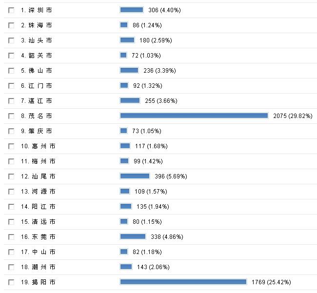 南方网“广东发展论坛”有网友在2008年12月30日发起票选“评选2008年广东社会治安最差的地级市”。截止2009年1月29日(中午)统计,在广东20个地级市中(广州市不参与投票),共有4648位网友参与投票,茂名市以2075票(29.82%)位居第一,揭阳以1769票(25.42%)排第二, 汕尾市则以396票(5.69%)列第三。