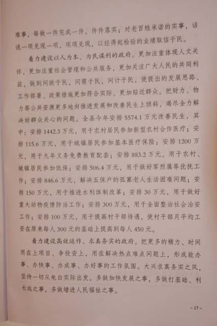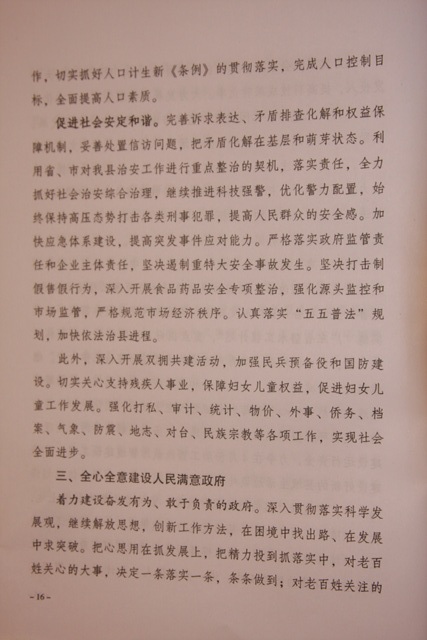 有一句话写着..对老百姓关心的大事..决定一条落实一条..貌似治安问题是最大的问题..有落实??