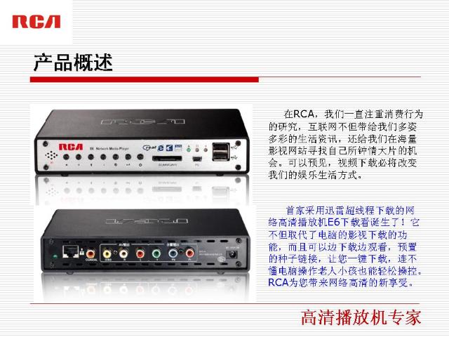 在创立之初,RCA就凭借其优质的产品,成为世界高科技的先驱者――美国联邦政府的支持注定了RCA在技术上的遥遥领先,广播时期她是全球无线电的泰斗(二战时为美国军队提供电子装备而功勋卓越);在全球沉醉于无线电的魅力时,她率先发明了第一台黑白电视机,她生产的大尺寸映像管产品销售全世界排名第一,电视机、录放影机、音响销量均居全美第一。