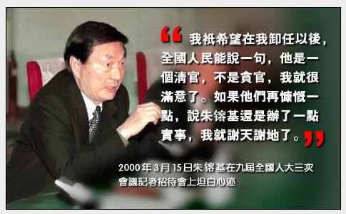 常拍桌子,瞪眼睛时。朱F基毫不讳言:“桌子拍过,眼睛瞪过,但是对贪官污吏,我