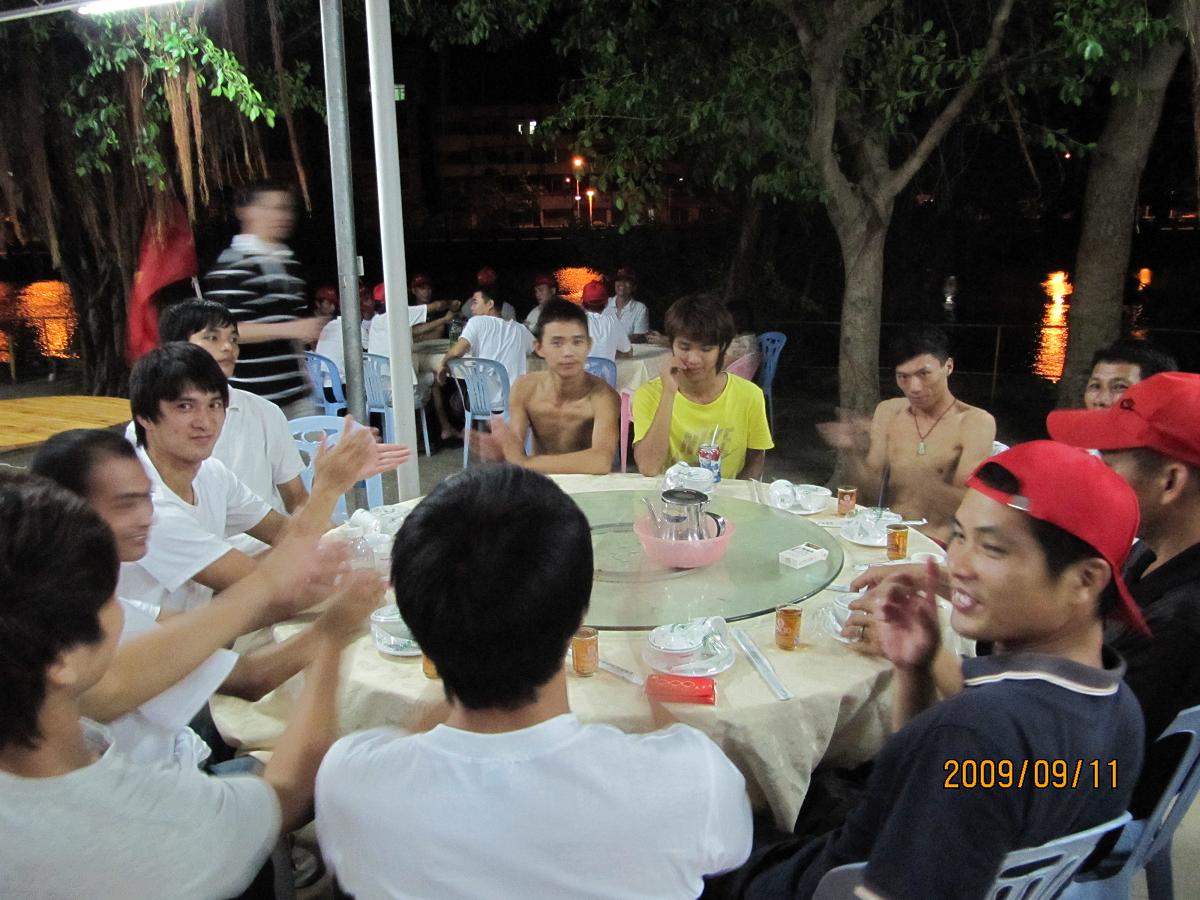 运动员简单吃点粥,得赶回海景湾卡拉OK庆祝。