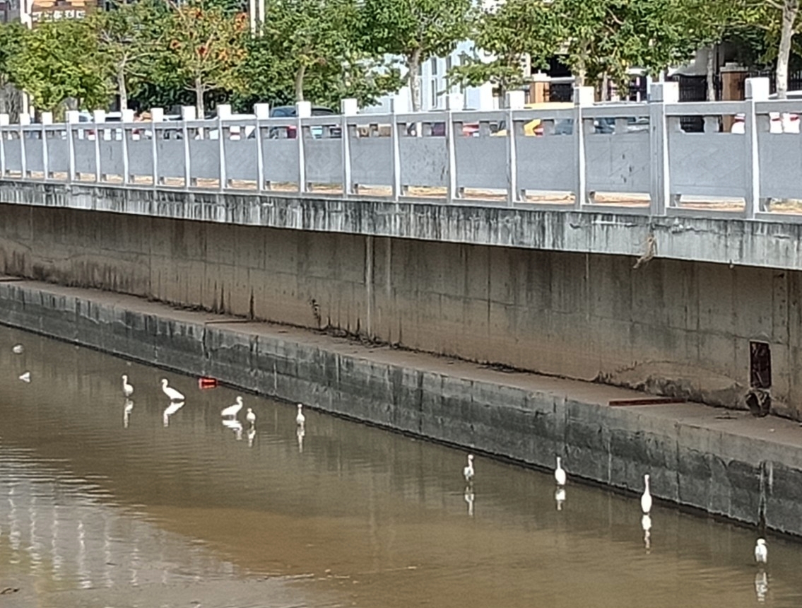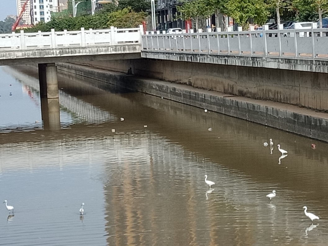 你是在现场直播吗想不明白,人说人为财死,鸟为食亡,这观鹭阁对面这条排洪河,透过水面水下,左看右看,上看下看,没啥水中花水中鱼呀,不明这些白鹭与其它些鸟在这磨蹭寻觅些啥??