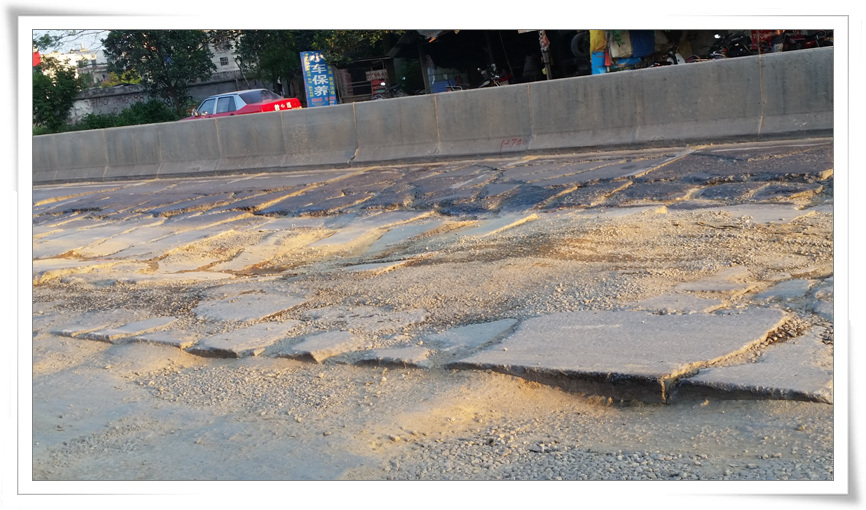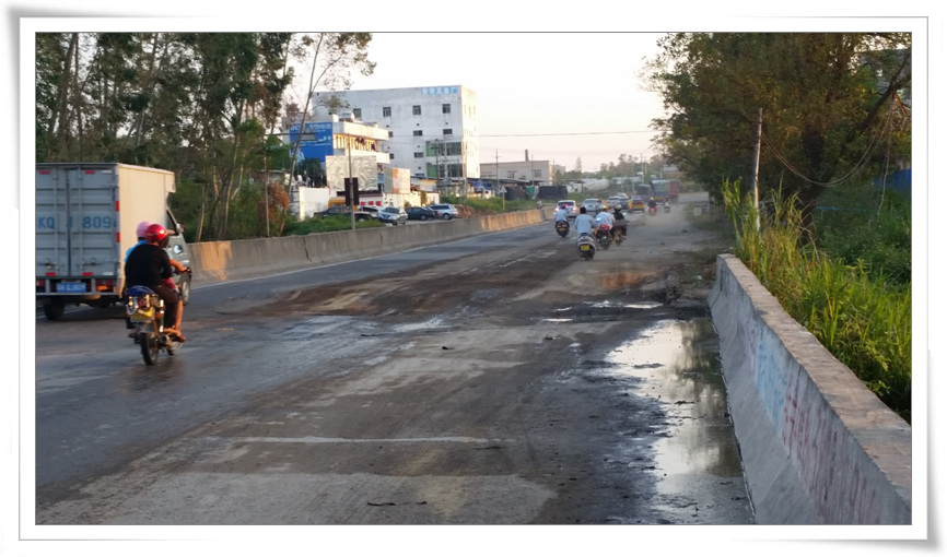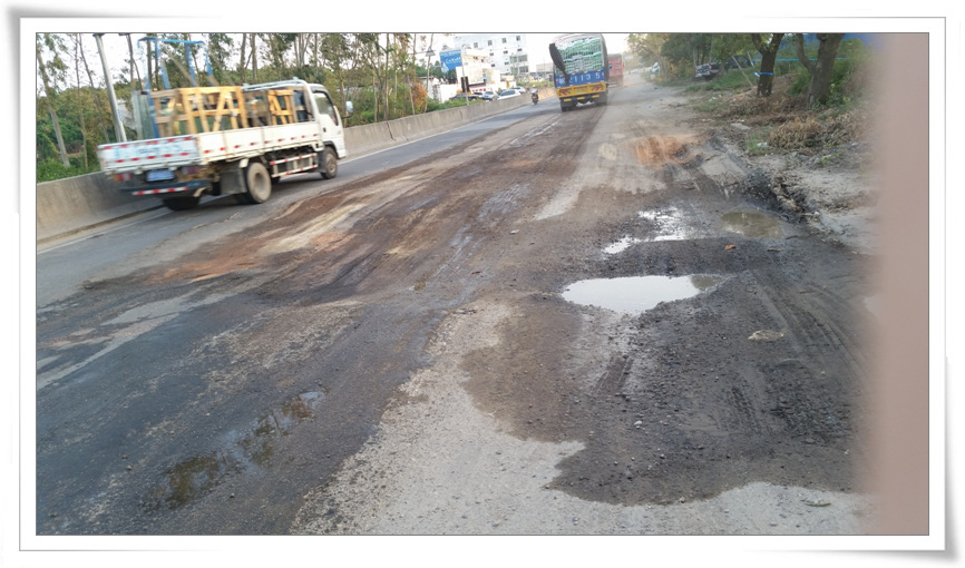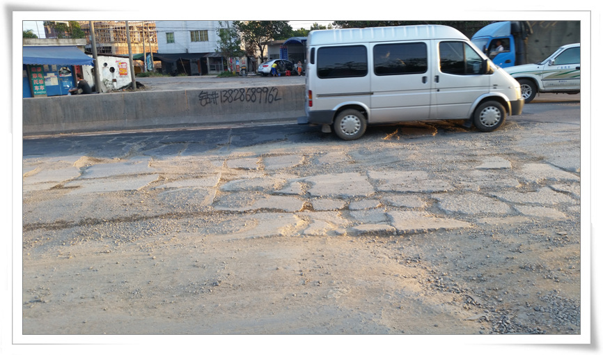 还有更烂的地方呢!旦场红花至麻岗之间那里有个地方,在快车道,有一个大坑!起码有十几二十厘米深,有一次不知道,开车经边那里,差点翻车了!如果开快点就真是翻车了!什么国道!