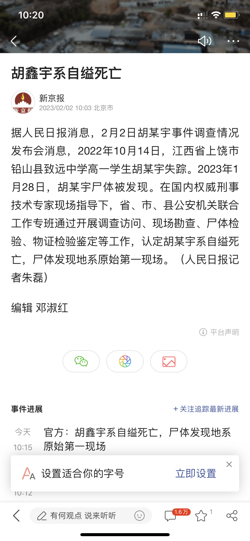 阿 阿玲2005 副教授 注册 2009-03-23 帖子 2,104 反馈评分 151 点数 101 2023-02-01 Android Chrome Mobile 100.0.4896.127 #31 cz752 说: 人民网评胡鑫宇死亡事件:举国关注,谁都不敢造假,谁也不能造假 https://c.m.163.com/news/a/HS9IG1I80556123M.html?spss=newsapp&spsnuid=nQM0eUTbftjxu6nigBE5VWfzebMSxlJwJizWb4Nbfpj%2FxZC8y0BPXbm%2FEbu27Q4HjB56bFtBDL8aY36wSD9%2BMQ%3D%3D&spsdevid=34D92F41-2B71-44D8-A723-2A1C44A4F2F1&spsvid=&spsshare=default&spsts=1675047935355&spstoken=L7mfI6DIKaaKNjQwrOErJBSrXdjm1Cfe3Yd1wzbXSWmS3p6BLTVg3kOnhf7aF3M%2FWejDp97IPqkgUV9OM5xmQw%3D%3D 点击展开... 上饶市政府早有定论,自杀身亡,无头案